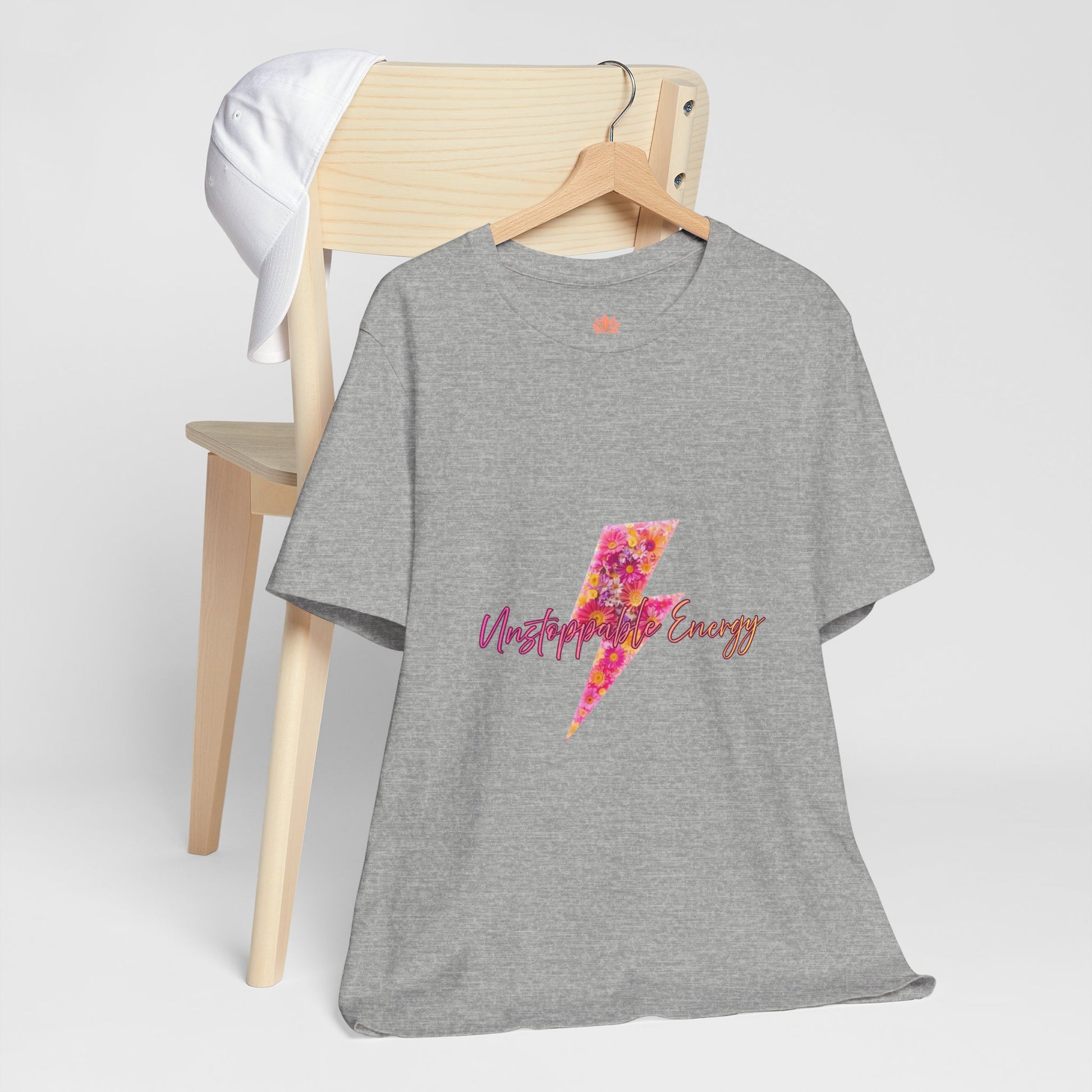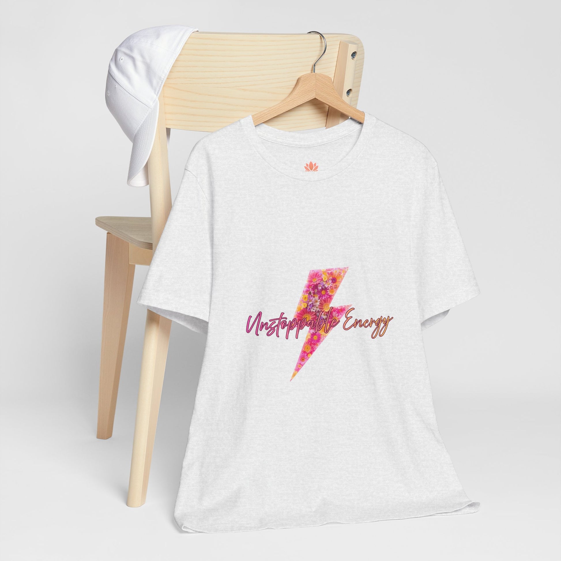 Vintage Floral Lightning Tee — "Unstoppable Energy" Graphic T-Shirt