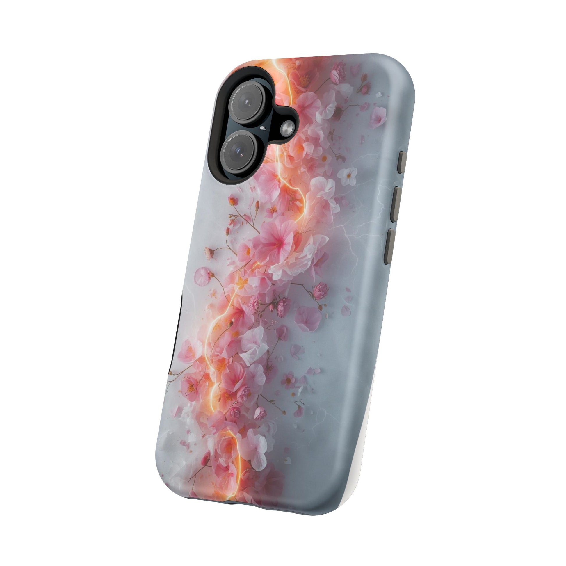 Unleash your power and carry unstoppable energy wherever you go. This Magnetic Impact-Resistant Phone Case combines bold artistry with modern protection — featuring a striking lightning bolt made of flowers surrounded by a pastel glow aura that radiates positivity and strength.